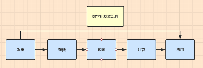數(shù)字化包括數(shù)據(jù)的采集、傳輸、存儲、計算和應用,是指將各類復雜多變的信息轉變?yōu)榭梢远攘康臄?shù)據(jù),并加以處理的過程。