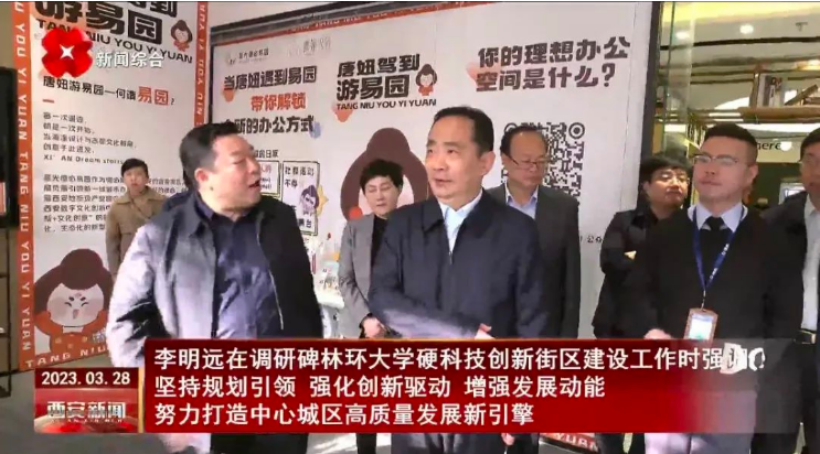 3月28日,西安市委副書記、市長李明遠前往碑林區(qū)調(diào)研環(huán)大學硬科技創(chuàng)新街區(qū)建設有關工作,參觀并詳細了解星光德必易園運營模式和現(xiàn)況。