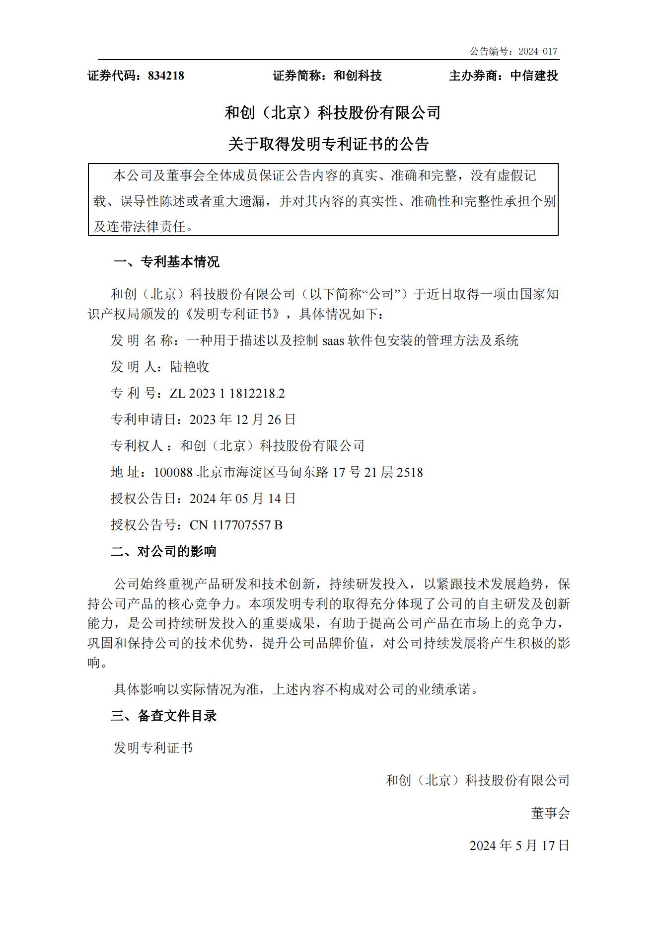 近日,我們又迎來了2024年的第三項發明專利!發明名稱為:一種用于描述以及控制saas軟件包安裝的管理方法及系統