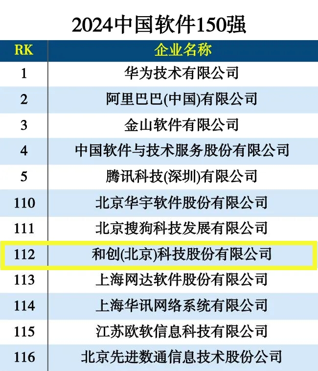 > 資源中心 > 官方博客 > 公司新聞 > 紅圈新聞 | 喜報!恭喜和創科技入選“2024中國軟件150強”