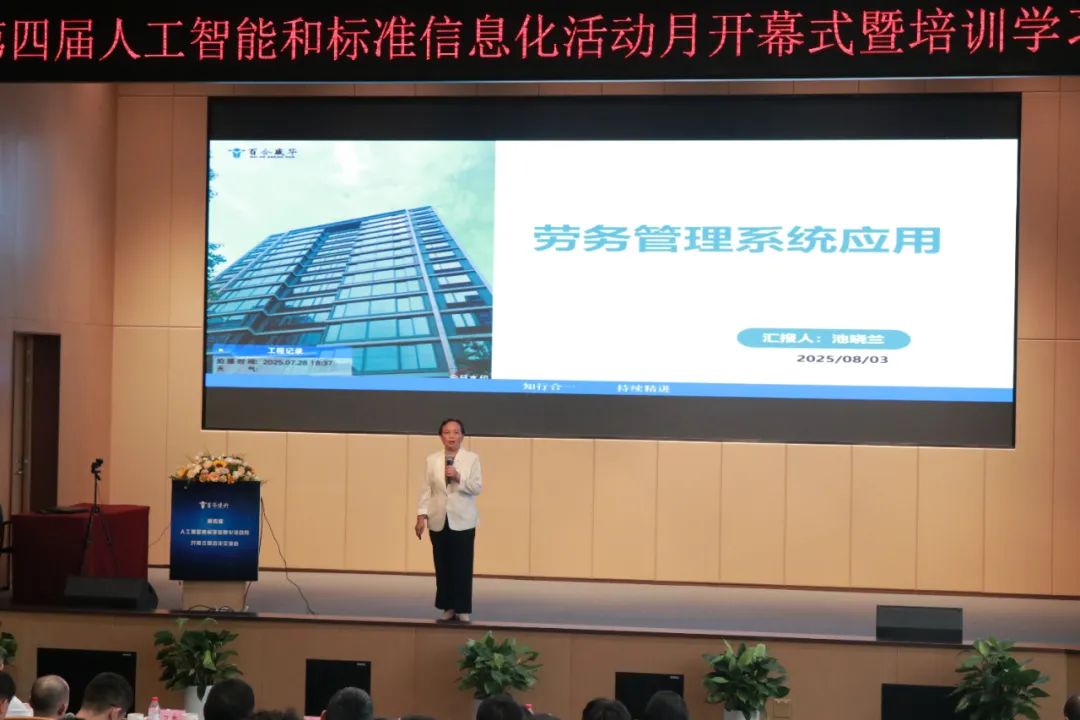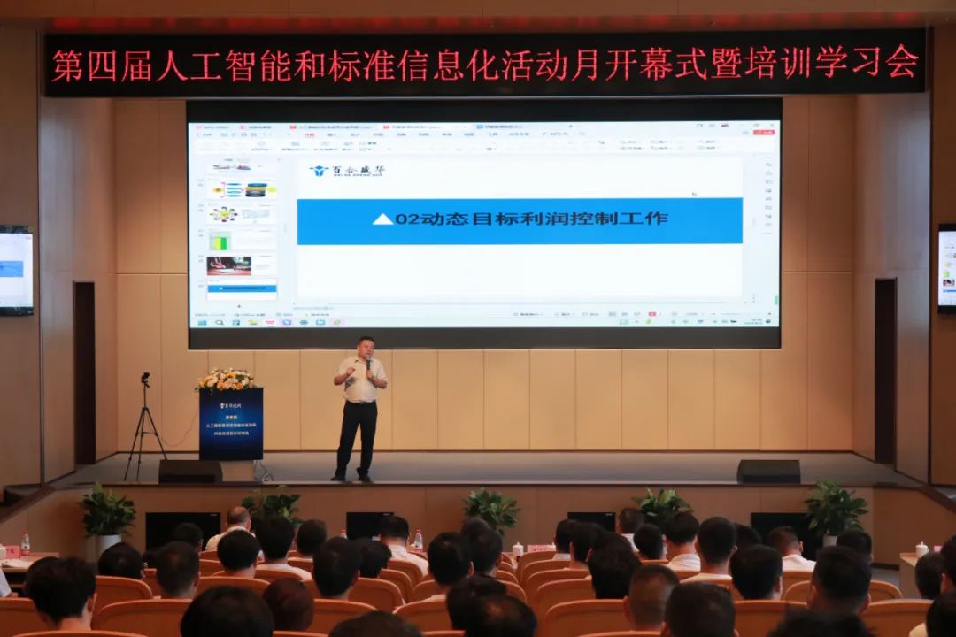 隨后,公司人工智能發展部副總經理鄒佳運發布《人工智能與標準信息化成果與未來發展》報告。他指出,“百華智造”管理系統已覆蓋公司94%的業務流程,實現跨部門數據共享,AI助手、AI視覺識別及AI報表分析等技術已全面落地應用。未來將重點強化預算管理模塊功能,通過授權精簡審批流程,深化AI應用,助力項目提質增效。