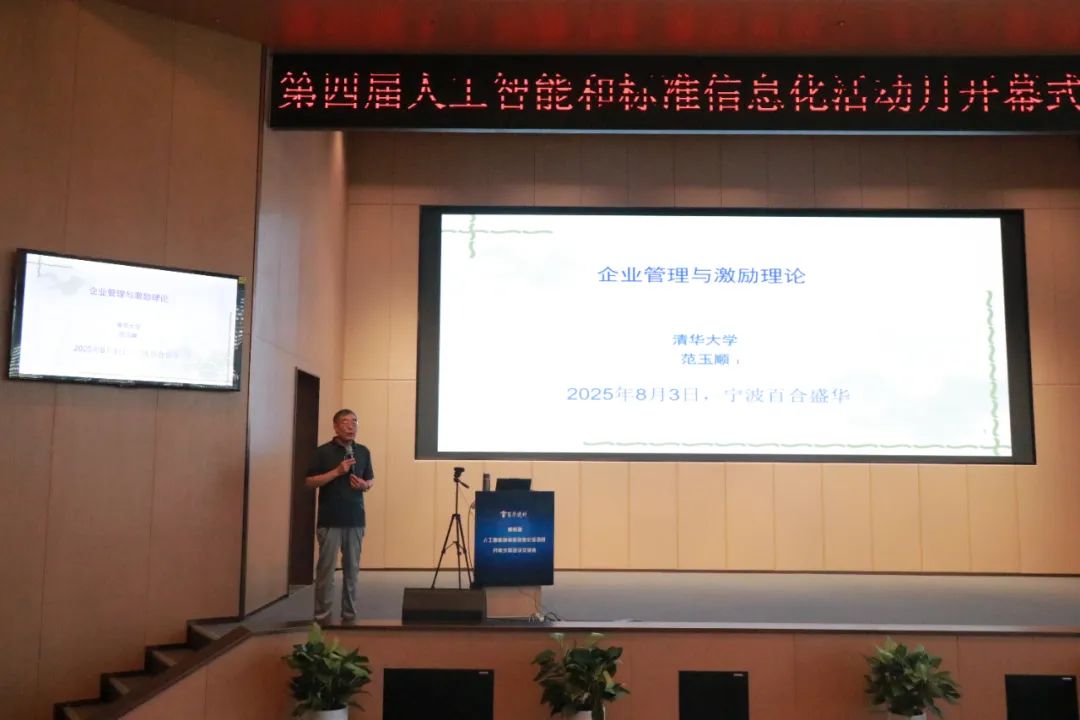 2025年8月2日上午,百合盛華建筑科技有限公司(以下簡稱“百華建科”)第四屆“人工智能與標準信息化活動月”開幕式暨培訓學習會寧波工業互聯網研究院四樓報告廳隆重啟幕。本次活動為期兩天,公司總部及分子公司的200余名管理骨干、技術精英與班組代表齊聚一堂。清華大學長聘教授、博士生導師范玉順教授作為特邀嘉賓蒞臨現場,共同見證這場以“人工智能協同標準信息化,雙輪驅動企業數字化、智能化發展”為主題的年度盛會。