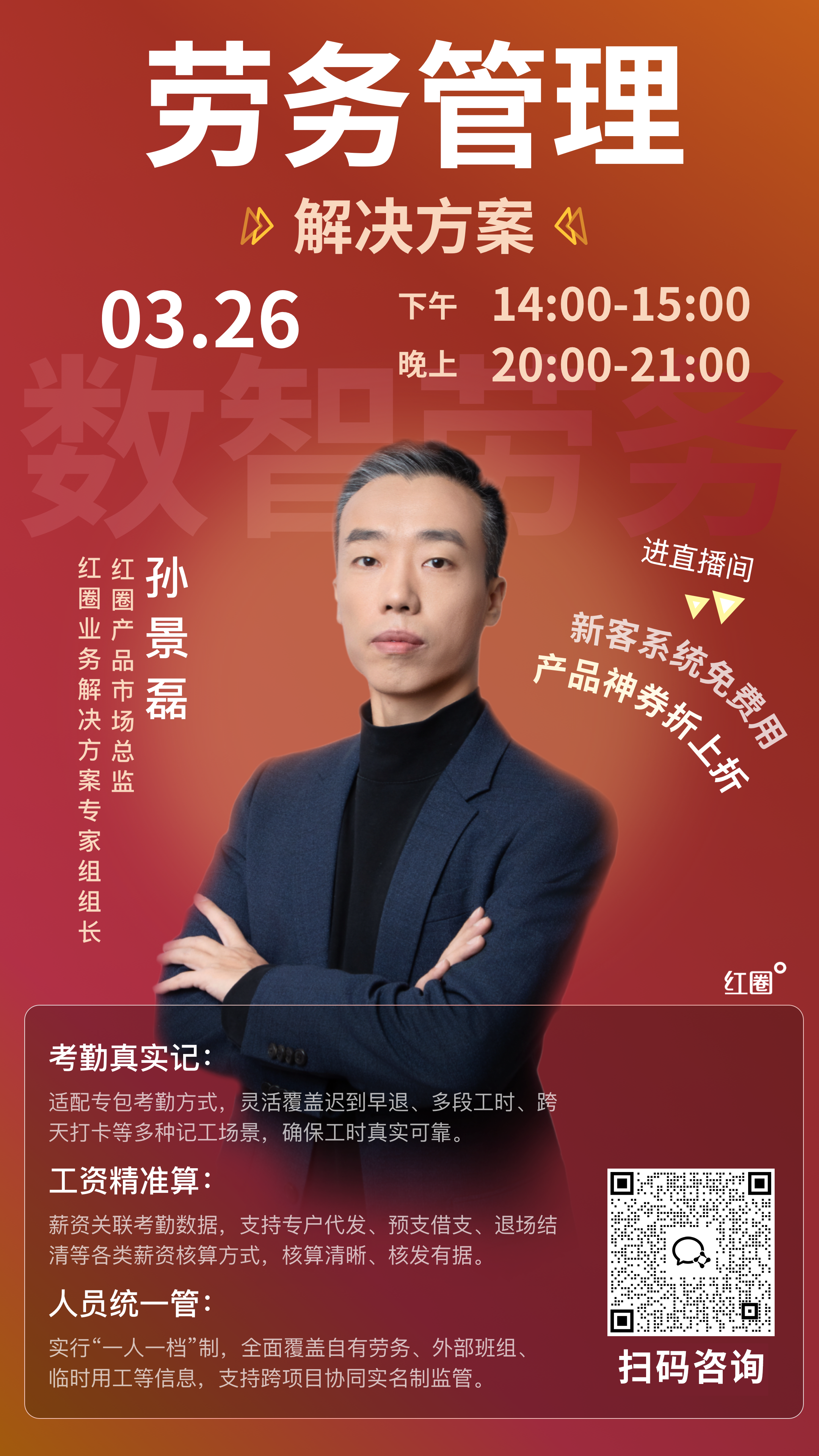 直播預告丨勞務管理又出新難題?03.26紅圈“數(shù)智勞務管理”直播第二彈,這次千萬別錯過!