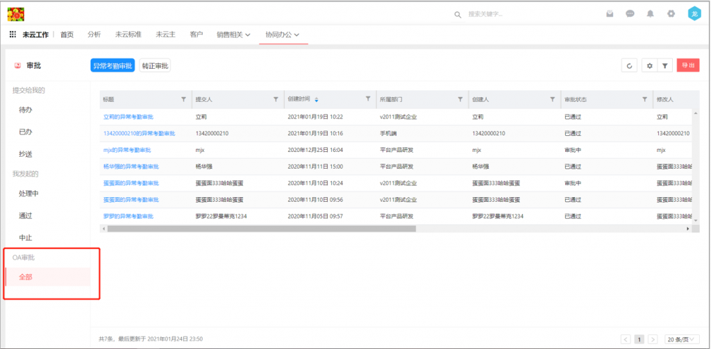 2)管理員可以在前臺的審批應用中,查看該審批單的全部數據,包括已審批結束和審批中的