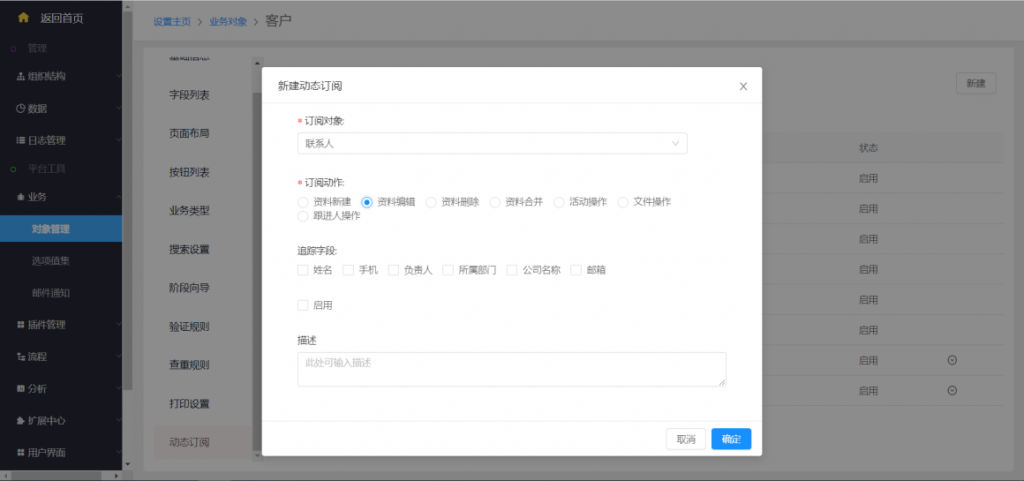 1、對象動態訂閱包含系統動態和自定義訂閱動態