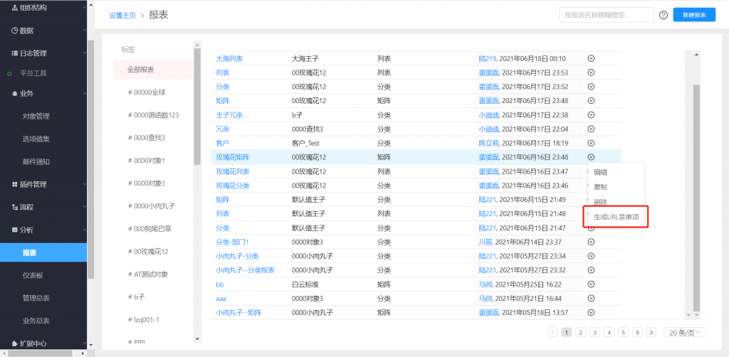 報(bào)表可以創(chuàng)建菜單項(xiàng),支持在前臺(tái)快速訪問(wèn)