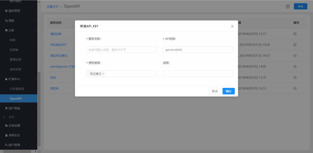 OpenAPI在功能開(kāi)通后,用戶可以在后臺(tái)自行創(chuàng)建連接,生成密鑰