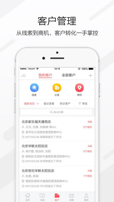 紅圈CRM是一款面向大客戶和項(xiàng)目制銷售團(tuán)隊(duì)的移動(dòng)CRM軟件,幫助企業(yè)對(duì)客戶信息以及銷售人員和客戶的互動(dòng)情況進(jìn)行跟蹤,打通從銷售線索到客戶、商機(jī)、合同、訂單直至回款的全流程,幫助企業(yè)縮減銷售周期、提升業(yè)績(jī)。