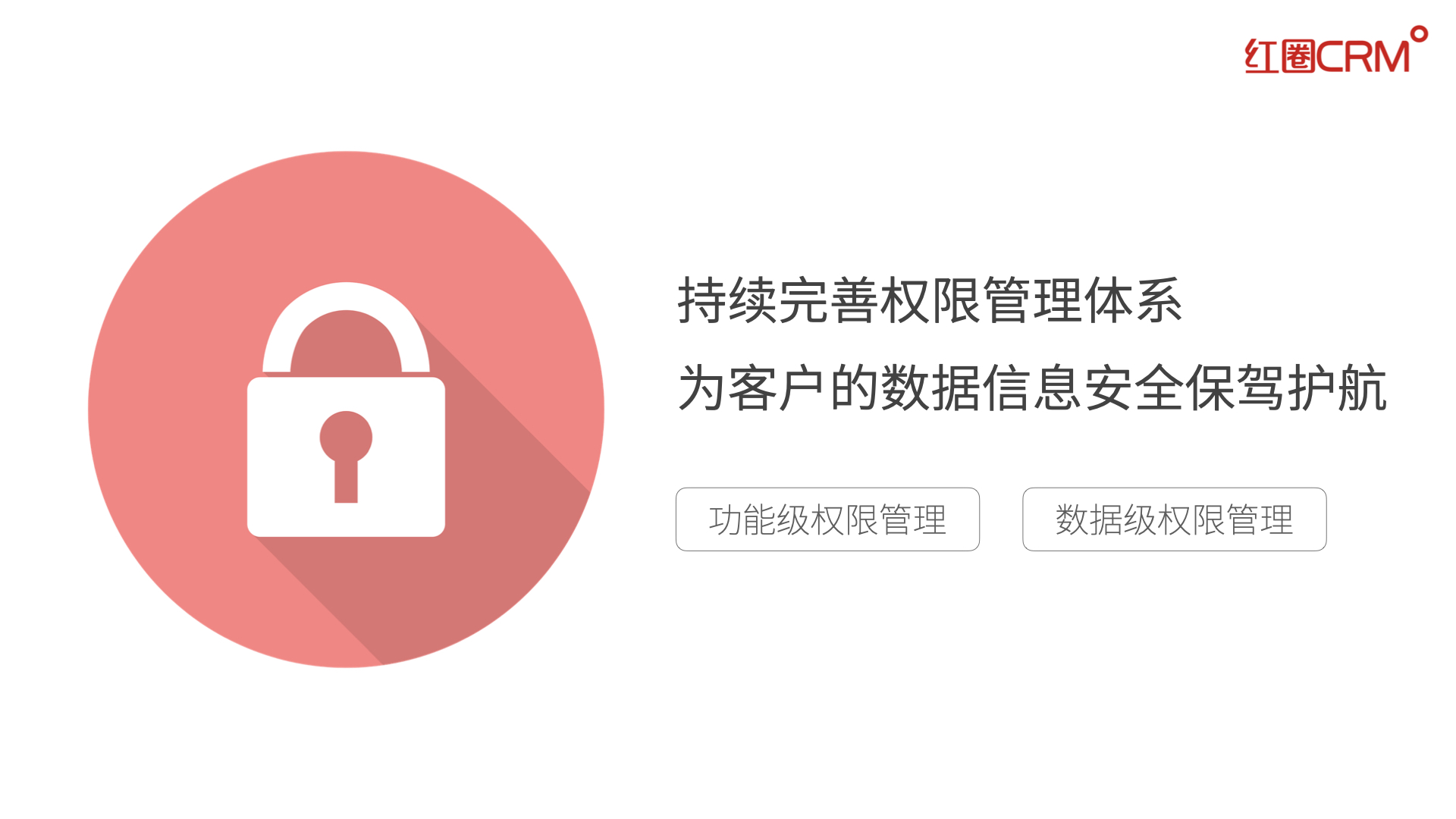 紅圈 CRM 的產品研發團隊一直將數據的安全保障作為重中之重的工作,致力于通過不斷優化的技術手段和設計方案保障客戶的數據安全。而權限管理作為數據安全保障的重要部分,也是紅圈 CRM 持續優化的重點。