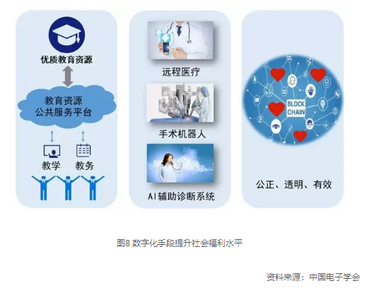 滿足人類對美好生活的向往和追求,是數字經濟孕育、誕生、發展的重要動力及目標。大幅提升公共資源供給效率,顯著增強公共服務效用,進一步推動教育、醫療、慈善等公共事業的便捷化、普惠化、均等化,是數字經濟在創新變革生產方式、促進實體經濟提質增效之外的關鍵著力點和突破口。多種類型、多個領域的網絡化、智能化的教育資源公共服務平臺將被搭建,面向公眾持續擴大優質教育資源覆蓋面?;ヂ摼W遠程診療將成為高頻次、低門檻、易得可選的常規醫療方式,并引入人工智能助手有效提升診療精準度,緩解全球性的醫療資源緊張難題。區塊鏈技術將在慈善資金募集和捐贈過程中得到大規模應用,強化互信關系,減少交易成本,溯源資金去向,保障慈善事業的公正、透明、有效。