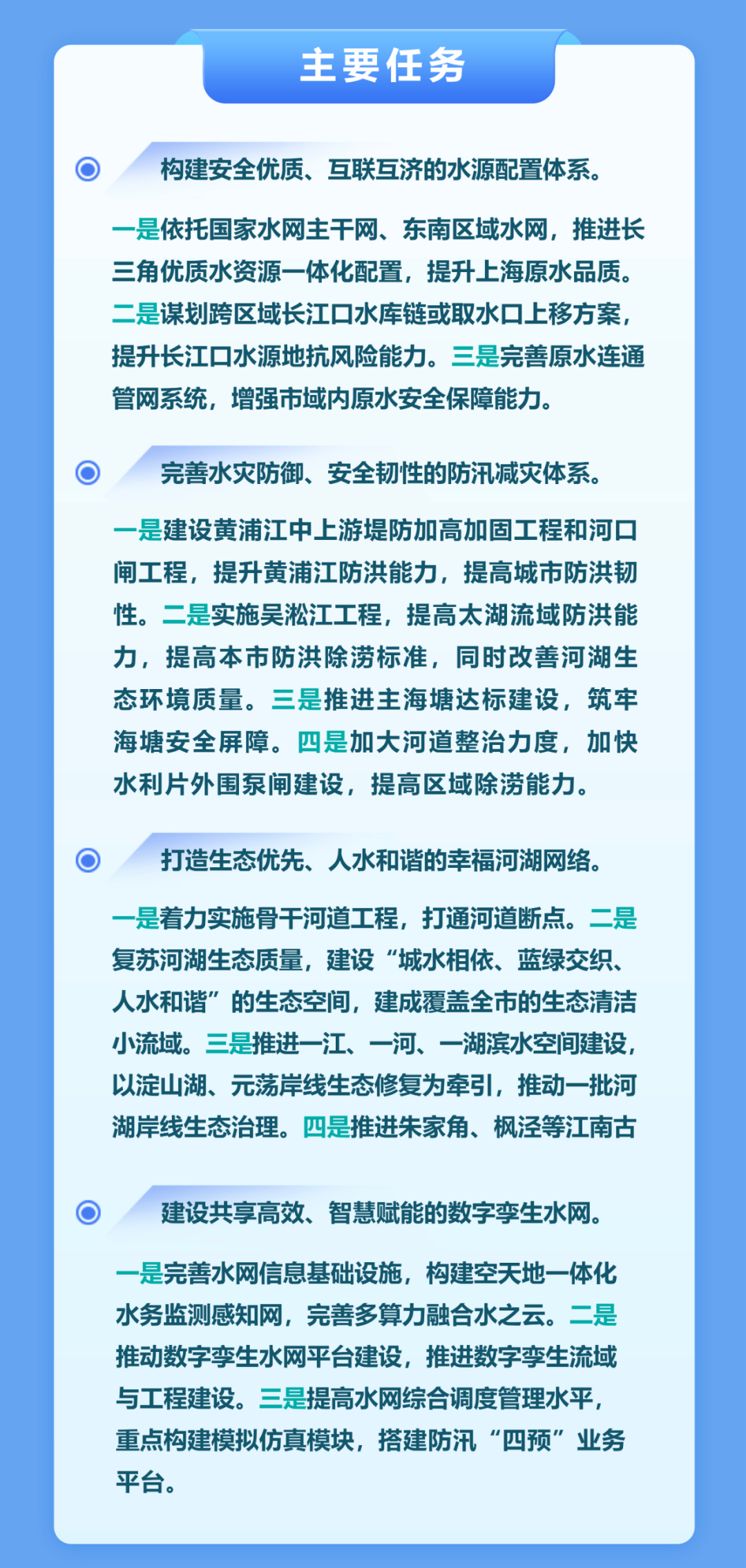 上海市水務局介紹,上海水網建設主要有四項任務: