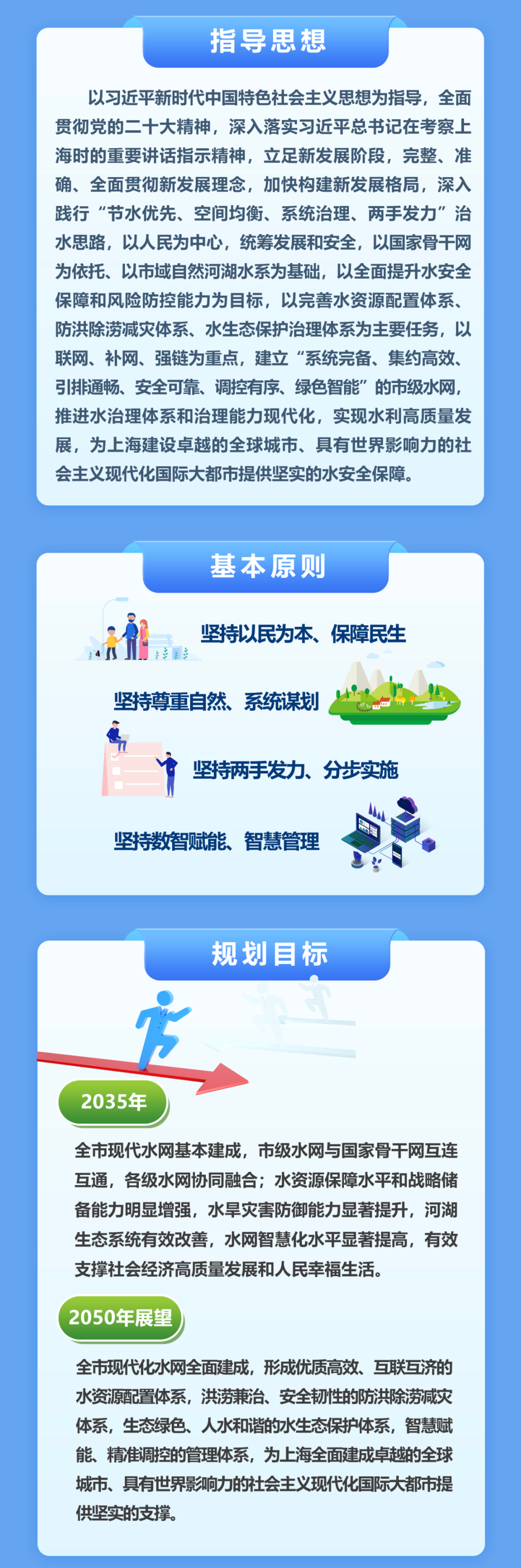 《規劃》提出,到2035年,全市水網基本建成,市級水網與國家骨干水網互通,各級水網協同融合;水資源保障水平和戰略儲備能力明顯增強,水旱災害防御能力顯著提升,河湖生態系統有效改善,水網智慧化水平顯著提高,水網管理效能極大提升,有效支撐全市社會經濟高質量發展和人民幸福生活。到2050年,全市現代化水網全面建成。