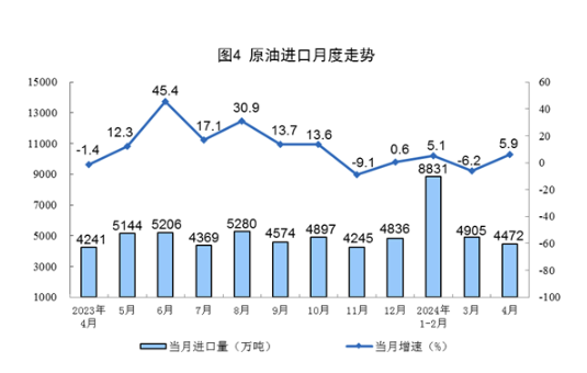 進(jìn)口數(shù)據(jù)來源于海關(guān)總署,其中2024年4月份數(shù)據(jù)為快訊數(shù)據(jù)。