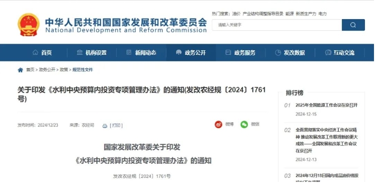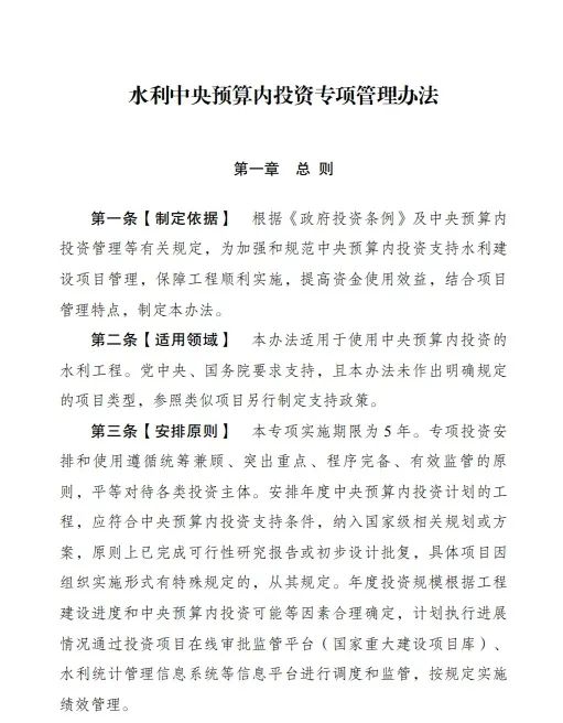 行業政策?|?國家發改委發文!加強水利中央預算內投資專項管理!