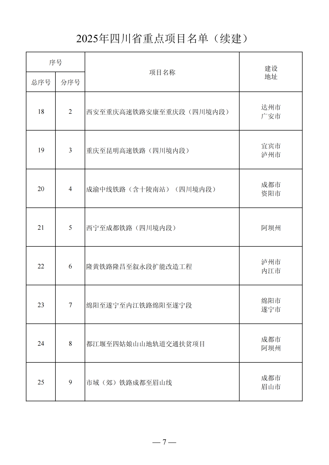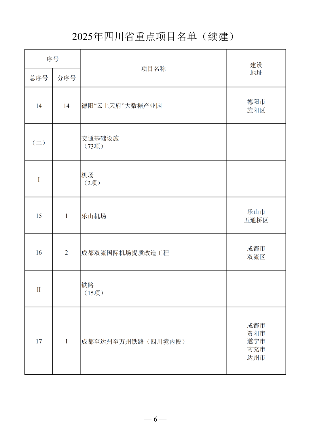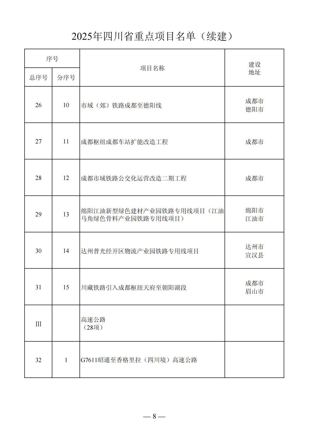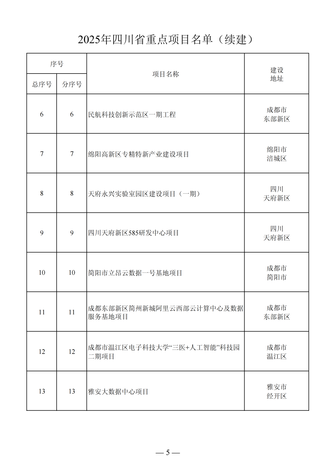 2025年四川省重點項目名單