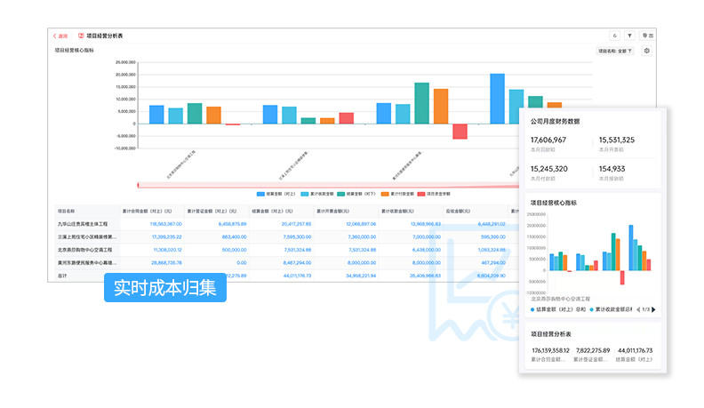 2、管理層無法實時掌握項目收支情況,各類數(shù)據(jù)不能及時記錄并匯總。項目實施過程中的人機(jī)材成本超標(biāo)、進(jìn)度拖延、質(zhì)量不過關(guān)等問題管理層也無法及時得知,更不能做出相應(yīng)的糾偏決策,最終導(dǎo)致成本超標(biāo)。
